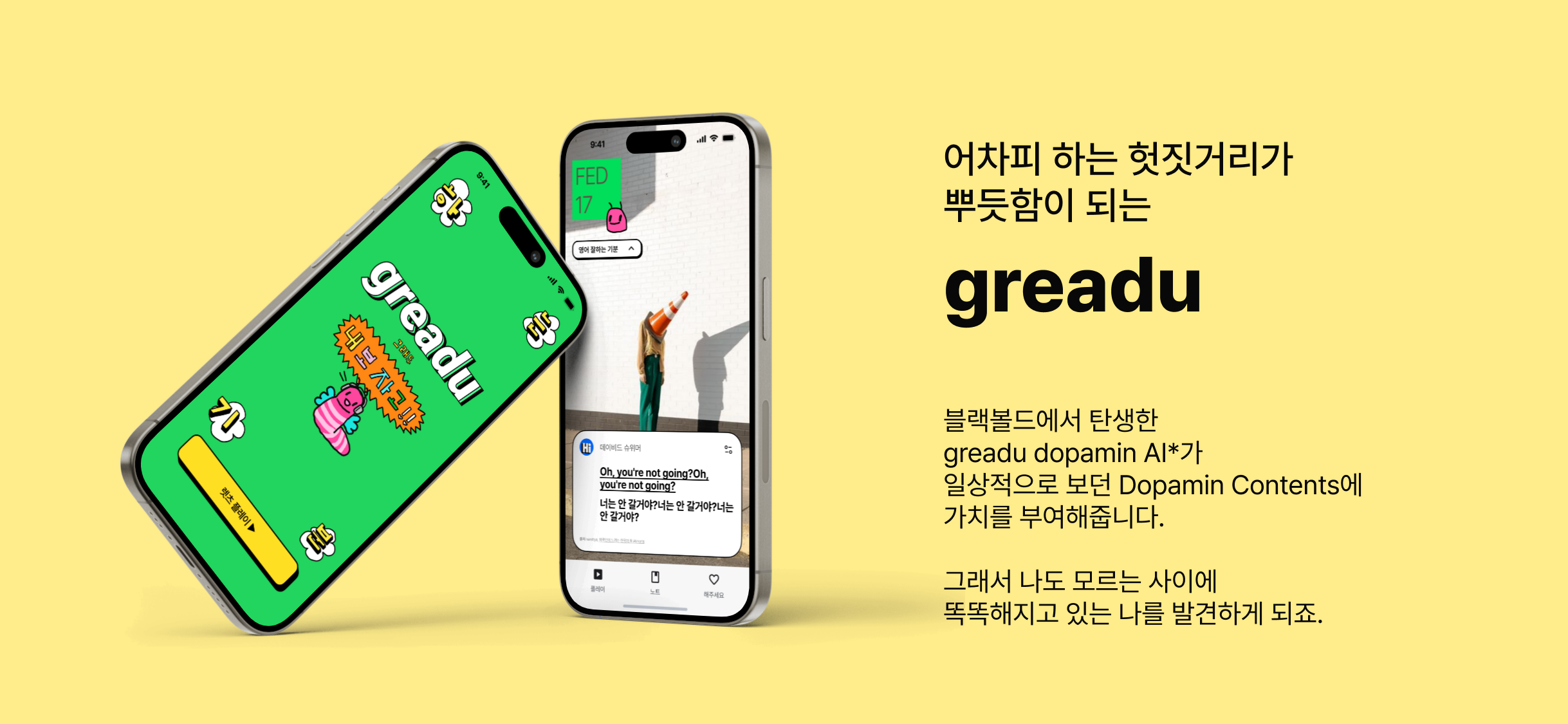 블랙볼드에서 탄생한 greadu dopamin AI*가 일상적으로 보던 Dopamin Contents에 색다른 가치를 부여해줍니다.